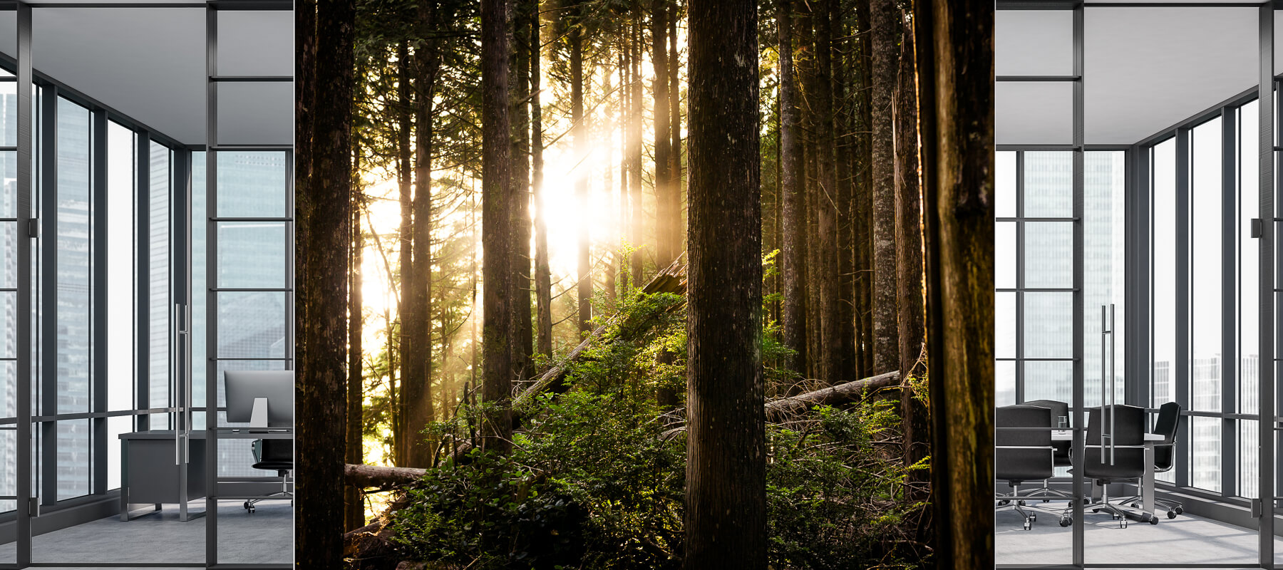 The BC Tech Incubator felt that these long stretches of white walls were too sterile for their ideal environment nurturing exploration and growth. Lifelightlens Photography transformed the space by applying a wall mural featuring an image exploring the local British Columbia wilderness to bring life to the space.